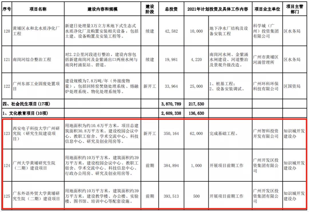 近日,广州市黄埔区人民政府网站发出《黄埔区发展和改革局 广州开发区发展改革局关于印发广州市黄埔区、广州开发区2021年重点建设项目计划的通知》,共160个项目被列入2021年重点建设项目计划表。
