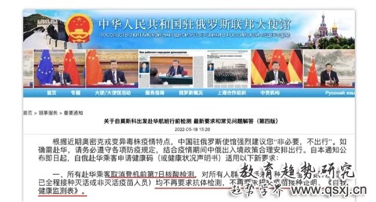 根据近期奥密克戎变异毒株疫情特点,中国驻俄罗斯使馆强烈建议您“非必要,不出行”。如确需赴华,请务必遵守各项防疫规定,结合疫情期间中俄出入境政策合理安排出行。自本通知公布即日起,自俄赴华乘客申请健康码(或健康状况声明书)适用以下新要求: