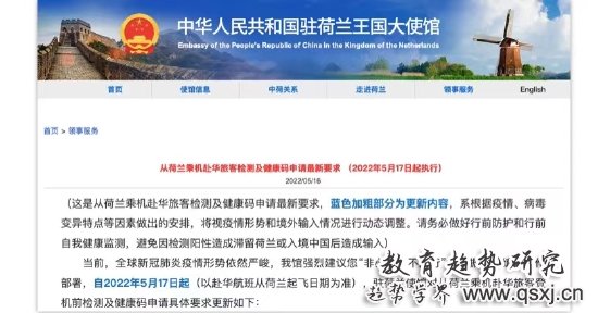当前,全球新冠肺炎疫情形势依然严峻,我馆强烈建议您“非必要,不旅行”。根据国内统一工作部署,自2022年5月17日起(以赴华航班从荷兰起飞日期为准),驻荷兰使馆对从荷兰乘机赴华旅客登机前检测及健康码申请具体要求更新如下: